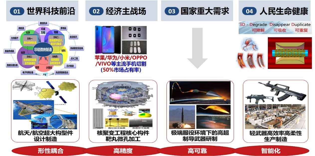 难加工材料加工、精密/超精密/微细微纳加工、数字化智能装配,加工质量检测与控制、设计制造知识智能化等技术在国家重大工程中得到了应用,为惯性约束核聚变专项、高档数控机床重大专项、探月工程等,做出了重要贡献。